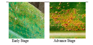 Common rust disease is one more maize disease favoured by high humidity levels and cold temperatures. During this disease, variety of small tan spots develop on both the surfaces of the leaf and as a result, the photosynthesis of the leaf reduces drastically. the identical has shown.