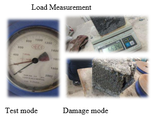 7Ddays, 14days and 28-day compressive strength tests were performed in accordance with ASTM C39, Standard Test Method for Compressive Strength of Cylindrical Concrete Specimens. The previous concrete samples were capped with neoprene pads before being placed in the loading frame for testing as billow figure. An example of a failed sample is presented in the billow figure. A total of 3 samples were used for the strength test.