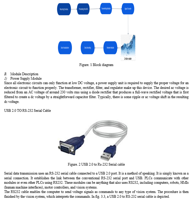 In this project, they create a mechanism that can wirelessly transport data between two points. Here, the image transmission is accomplished using water as a communication medium. Our system is made up of a few ATMega328 micro controllers, as illustrated in the block diagram (figs. 3.1 & 3.2).