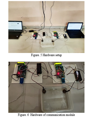 The data transmission module was submerged in water, and the Data communication transmission module from the controller in the transmitter side sends the data to the reception side through the water.