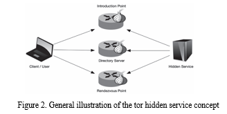 Specifically, when utilizing Hidden Services, the operator of any Internet service (such as a standard web page, including forums or message boards, pertinent to our investigation) can conceal their IP address from clients accessing the service. When a client connects to the Hidden Service, all data is directed through a designated Rendezvous Point, facilitating the connection of separate anonymous Tor circuits from both the client and the actual server [8]. Many of such services are known to such threats which can harm many of the features and access through the internet.