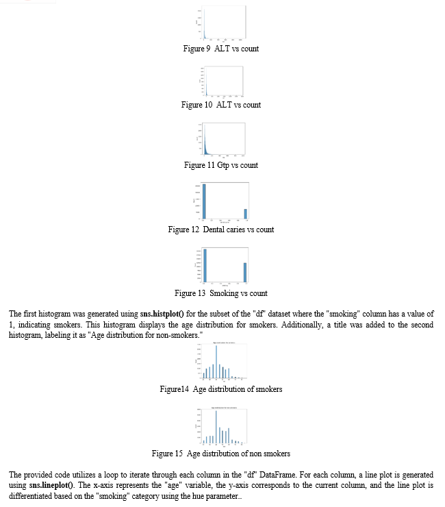 These data preprocessing techniques were instrumental in preparing the dataset for accurate classification of smoking behaviors through machine learning models. Handling missing values and outliers ensured that the models could discern meaningful patterns within the data. Additionally, data normalization and encoding facilitated compatibility with diverse machine learning algorithms.