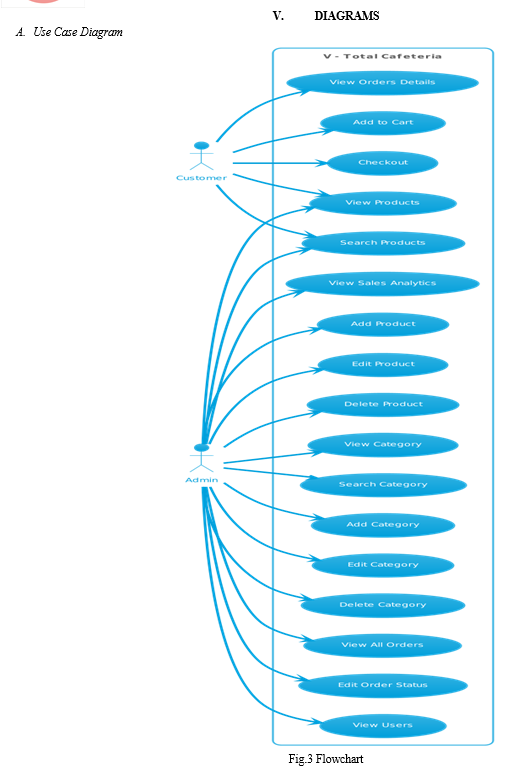 The V – Total Cafeteria aims to modernize the current manual system with the help of computerized equipment and software applications, resulting in the efficient management of data. The hardware and software required for this purpose are easily accessible and user-friendly. The cafeteria in the institution witnesses a long queue during breaks, causing significant delays in food service and inconvenience to students and faculty. In order to eliminate this waiting time, a software solution is proposed where orders can be projected directly onto the cafeteria monitor once they are placed. This would eliminate the need for customers to wait in line at the payment desk, as the server can prioritize fulfilling previous orders before moving on to new ones. Additionally, online payment options can also be introduced to minimize time spent waiting for change. The project\'s primary objective is to automate the canteen management system, which involves managing canteen details, product information, order tracking, and user data. The project is solely accessible to the admin, who has complete control over the system.