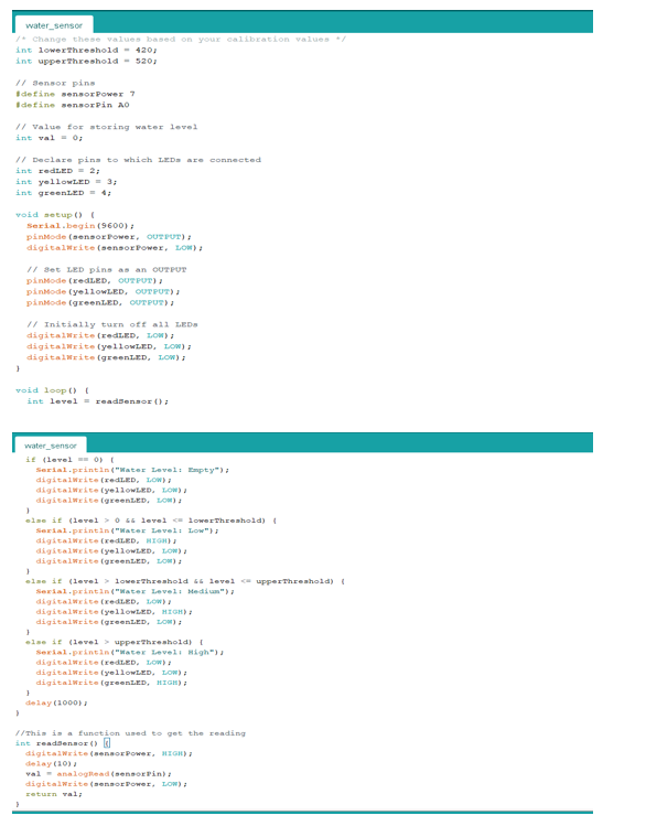 This sensor works according to level of water inside the car. we defined initial value for sensor in coding. Sometime car goes through some water present on road during the rainy season. Also, the during washing of car sensor get some input so avoid such disturbances we made the changes in coding according to requirement. We defined three level in high, medium, low according to this sensor work. if water level less than low range sensor doesn’t work. if water level is more than medium level sensor passed the information to the actuator and then mechanism works. There is delay of 10 milliseconds.