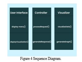 This sequence diagram illustrates the interaction between the key classes of the platform, including the UserInterface, Controller, and Visualizer classes.