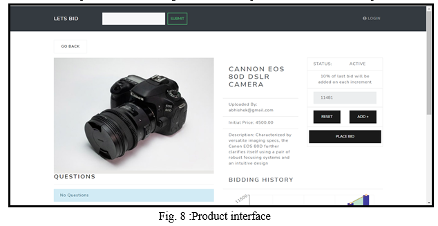 1. The product interface shows the product details along with it’s initial price and status with the option to bid on the product.