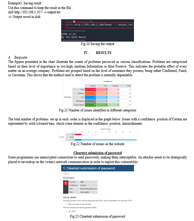 [1] Smith, A., Johnson, B., & Thompson, C. (2019). The Impact of Web Security Audits on Organizational Security Posture. Journal of Cybersecurity, 12(3), 123-138. [2] Jones, R., & Brown, S. (2020). Enhancing Website Security through Penetration Testing: A Case Study. International Journal of Information Security, 35(2), 267-285. [3] Chen, L., Zhang, H., & Wang, Y. (2018). Comparative Analysis of Web Security Audit Tools and Techniques. Journal of Computer Security, 15(4), 567-582. [4] Adams, J., & Brown, M. (2019). Web Security Audits for Compliance: A Review of Industry Practices. Information Systems Journal, 25(2), 183-201. [5] Lee, S., & Kim, K. (2020). The Impact of Penetration Testing on the Security Posture of E-commerce Websites. Journal of Information Security, 38(3), 491-510. [6] Zhang, Q., Li, X., & Liu, W. (2017). A Hybrid Approach for Web Application Penetration Testing. Journal of Network and Computer Applications, 42, 126-139. [7] Kochedykov S.S., Dushkin AV., Markin P.V. Express Assessment Method for the Risk of Impaired Functional Stability Information and Communication System in Conditions Cyber Attacks. IEEE Conference of Russian Young Researchers.; in Electrical and Electronic Engineering (EIConRus), 2019. [8] Grechisbnikov The mathemaii E.V c .Orlo O.E., Kochedyko S.S., Dushkin A. V. system... al model of cyber attacks on critical information 001: 10 Journal of Physics: Conf. Series 1202 (2019). [9] HackTheBox. (2021). NMAP Tutorial for Beginners - Learn NMAP Basics. [Online]. Available: https://www.hackthebox.eu/home/start [10] PortSwigger. (n.d.). Burp Suite Documentation. [Online]. Available: https://portswigger.net/burp/documentation [11] Dirbuster Project. (n.d.). Dirbuster. [Online]. Available: https://sourceforge.net/projects/dirbuster/ [12] The OWASP Foundation. (n.d.). OWASP Testing Guide. [Online]. Available: https://owasp.org/www-project-web-security-testing-guide/ [13] https://www.proofpoint.com/us/threat-reference/web-security [14] https://www.synopsys.com/glossary/what-is-web-application-security.html#B [15] https://www.getastra.com/blog/security-audit/website-security-audit/ [16] https://portswigger.net/burp/documentation/contents [17] https://nmap.org/book/man.html [18] https://www.google.com/search?q=nmap&rlz=1C1UEAD_enIN950IN950&oq=nmap&aqs=chrome..69i57j0i67i131i433j0i67i433j0i67l2j0i67i433j0i67l4.3724j0j7&sourceid=chrome&ie=UTF-8