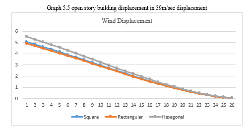 Table 5.6 open story drift vs. different shape of structure in 39m/sec