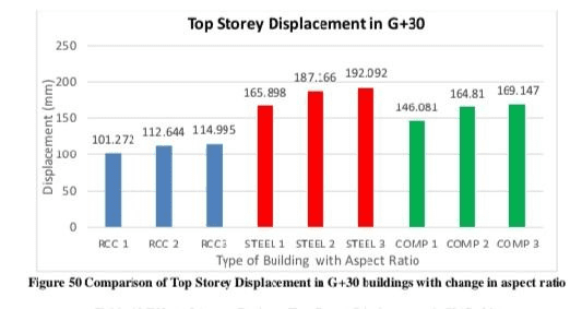 The effect of aspect ratio on time period is studied in this section by plotting the data obtained from ETABS and calculated increment/reduction in the values is shown in the tables. The data obtained is from G+20 storey and G+30 storey building made of RCC, Steel and Steel Concrete Composite.