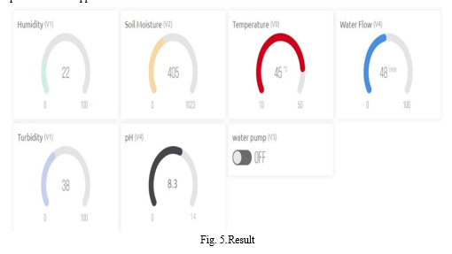 Thus, we decided to try our project with an application called Blynk. Initially, we tested the outputs on Blynk individually for each sensor, and to our delight, they worked with 100% accuracy. Encouraged by this success, we proceeded with our final round of testing, encompassing all the sensors and the water pump button. After numerous attempts and considerable perseverance, we ultimately achieved success. Our project successfully operated as expected, consistently providing accurate readings.